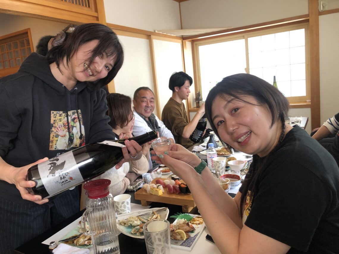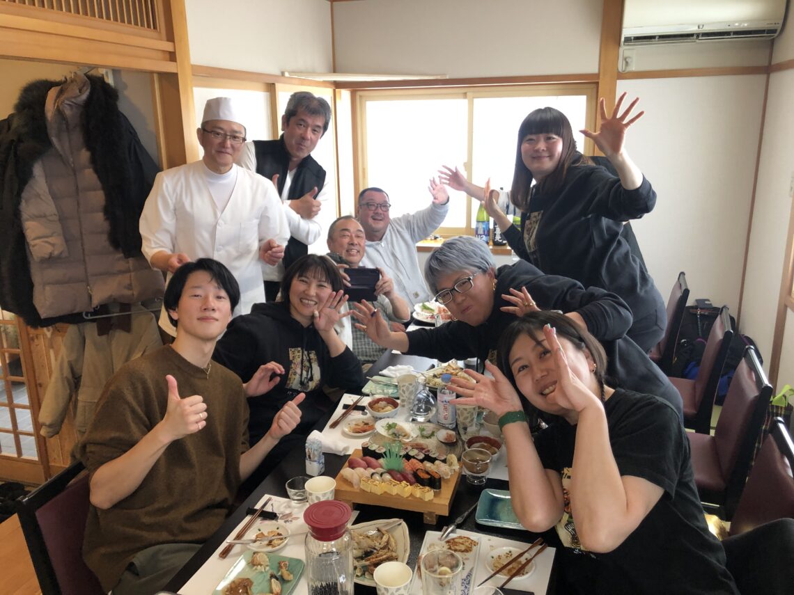 五城目町の「湯の越温泉」と「小倉温泉」に泊まられた日本酒処「嗜」からの御一行様が