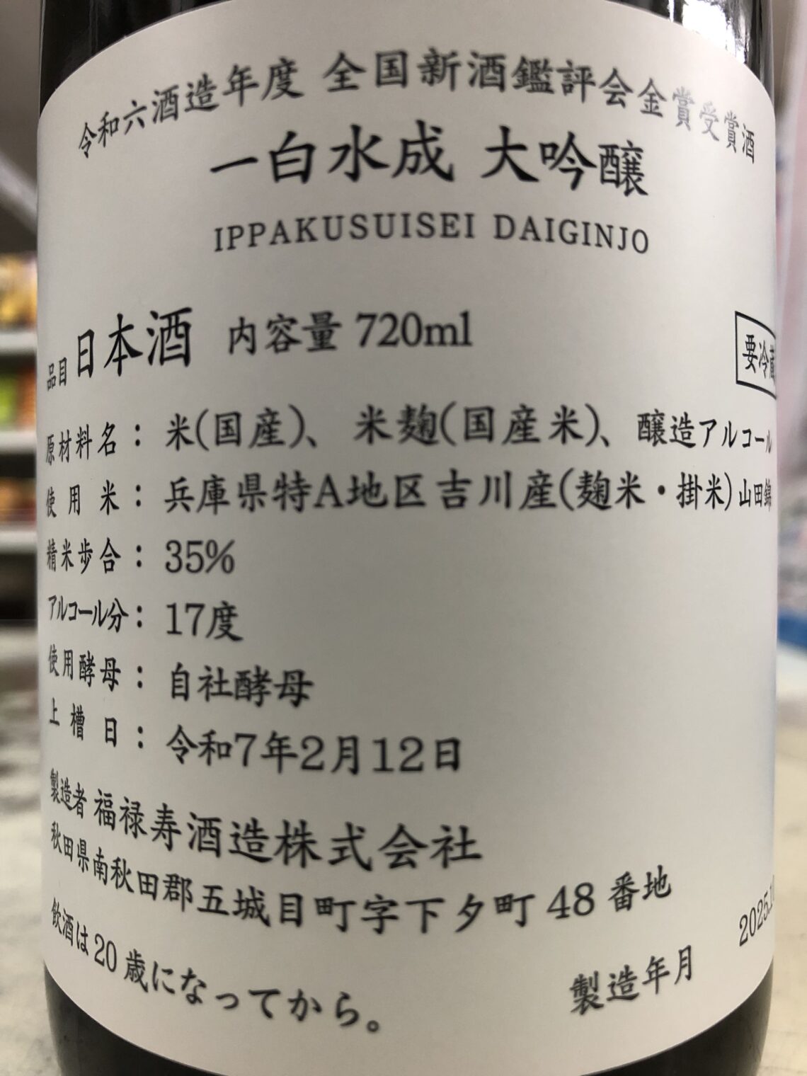 【福小町 純米吟醸 八反錦 Aging】